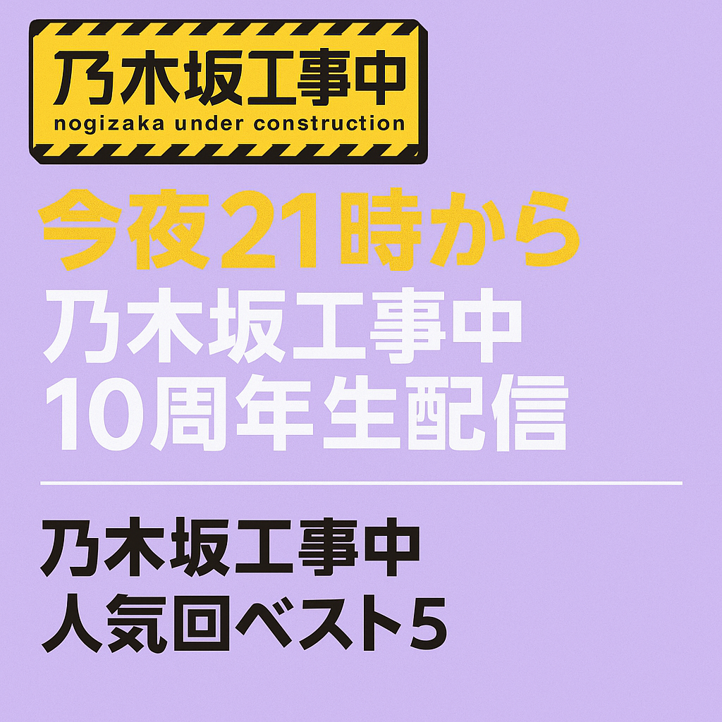 乃木坂46 🎥 今夜21時から!「乃木坂工事中」10周年生配信! 今夜、21:00〜より「乃木坂工事中」10周年を記念したスペシャル生配信が開催されます!配信場所は公式YouTubeチャンネル 「乃木坂配信中」。番組の歴史を振り返る“ファンが選ぶ名シーンベスト20”... 2025.11.06 乃木坂46乃木坂工事中